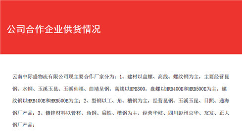 云南中際盛物流有限公司是云盛達(dá)建設(shè)集團(tuán)有限公司專業(yè)的一體化物資供應(yīng)鏈公司,位于云南昆明盤龍區(qū)金領(lǐng)地國際商務(wù)大廈10樓,是一家集倉儲(chǔ)、物流、建材物資供應(yīng)為一體的現(xiàn)代化企業(yè),公司成立至今,秉承著誠信為本,合作共贏的經(jīng)營理念,在建材服務(wù)領(lǐng)域不斷專業(yè)化;服務(wù)化。公司...